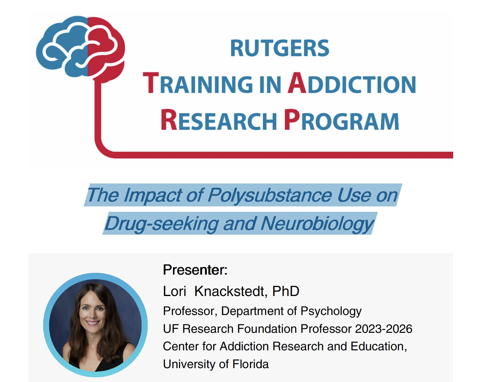 Training in Addiction Research Program (TARP) Meeting with Lori Knackstedt, PhD – “The Impact of Polysubstance Use on D rug-seeking and Neurobiology”