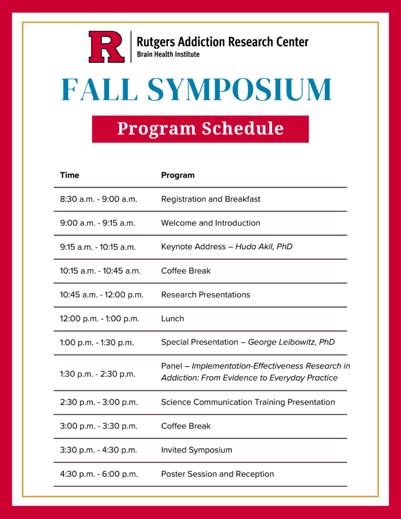 On September 5, 2025, the Rutgers Addiction Research Center (RARC), part of the Rutgers Brain Health Institute (BHI), hosted its annual Fall Symposium at the Busch Student Center in Piscataway, NJ. The event showcases cutting-edge addiction research, clinical insights, and community partnerships across Rutgers.