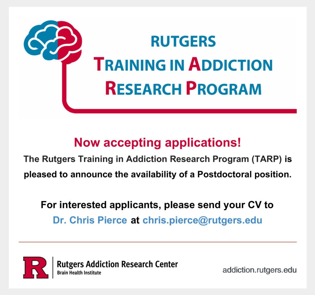 Open Postdoctoral Position – Rutgers Training in Addiction Research Program (TARP)